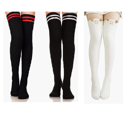 3 Pairs Soft Winter Warm Coral Fleece Knee Socks for Girls Women