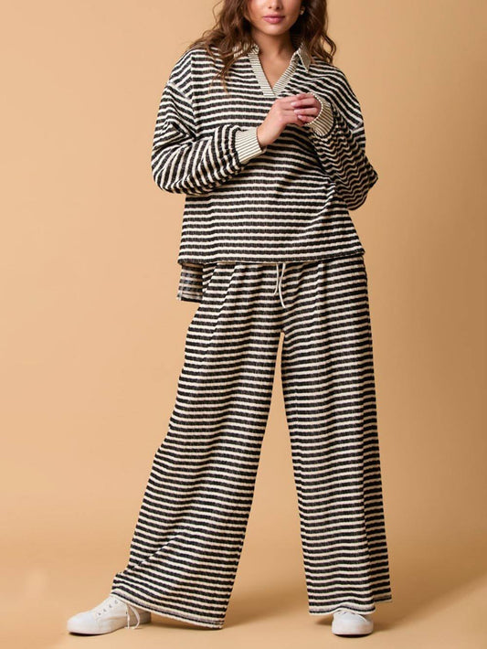 Casual Two-Color Striped Long-Sleeved Trousers Two-Piece Set