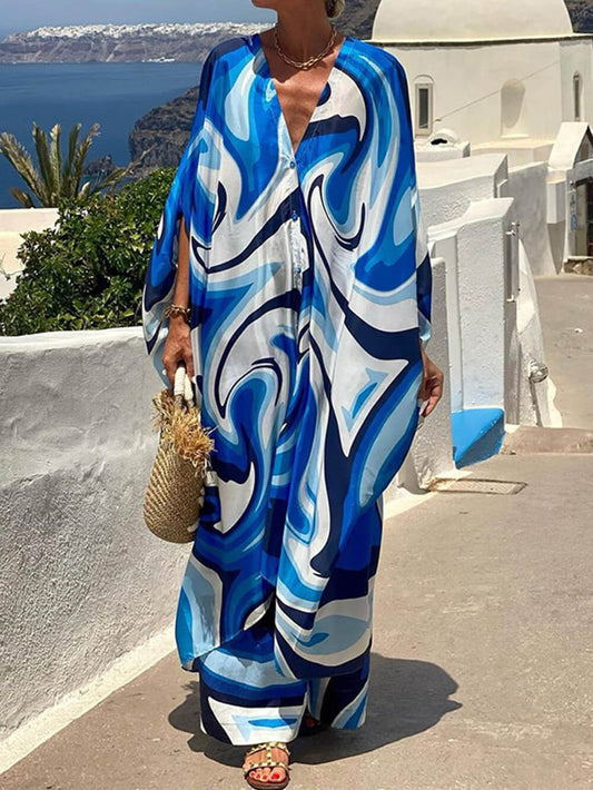 Fashionable Bat Sleeves Loose Oversized Blouse And Wide-Leg Pants Set