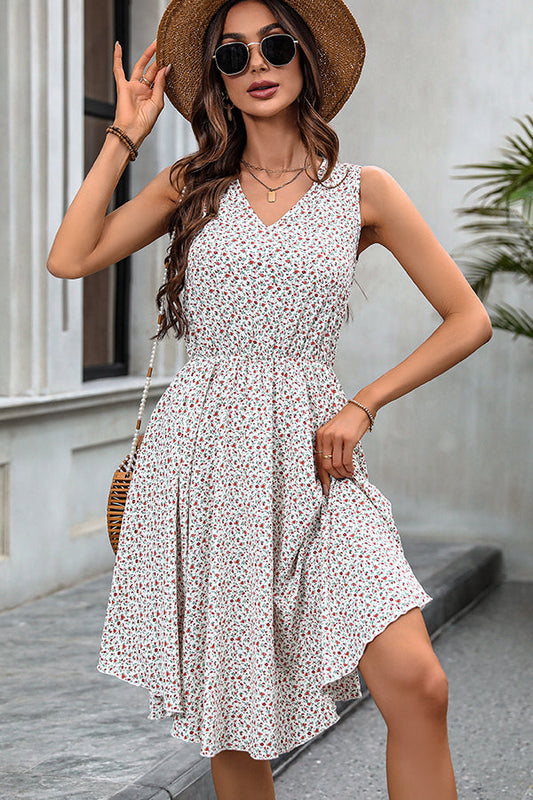 Floral Print Tie Shoulder V Neck Dress