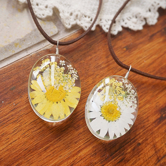 Resin Pressed Flower Necklaces - Ovar Crystal Dandelion