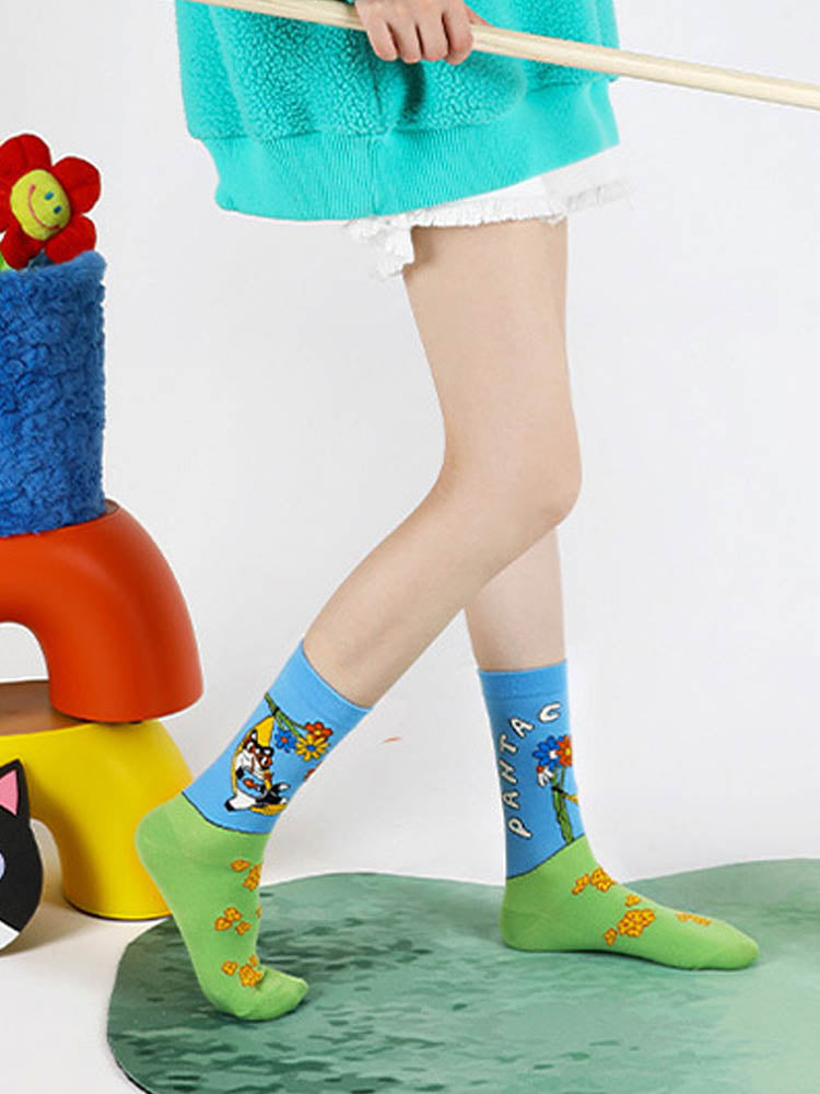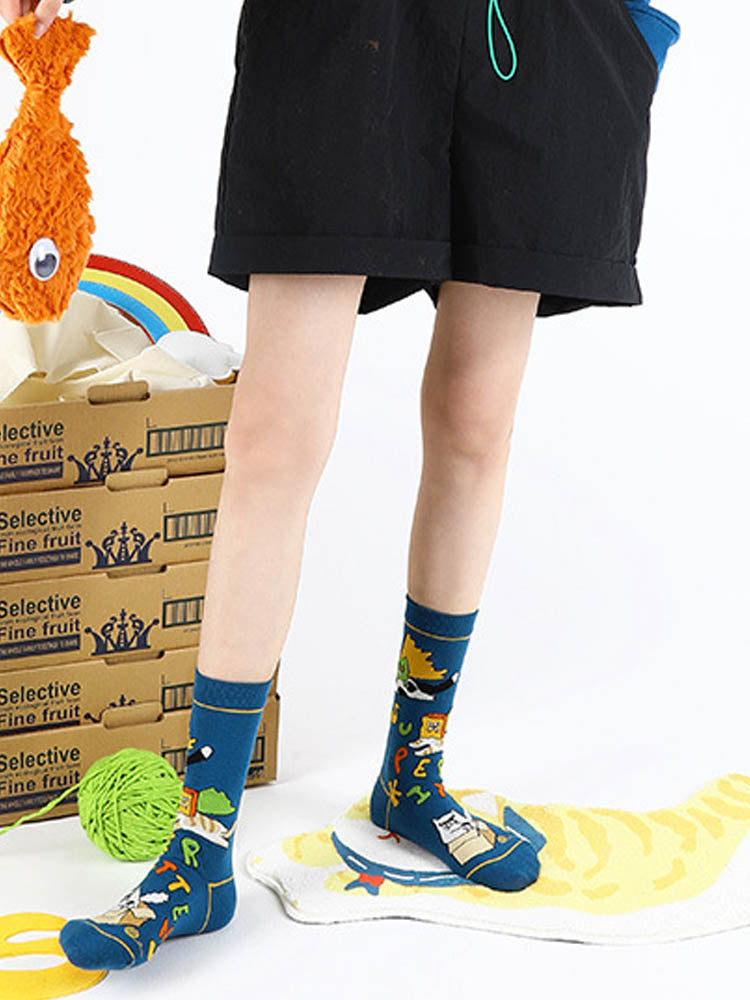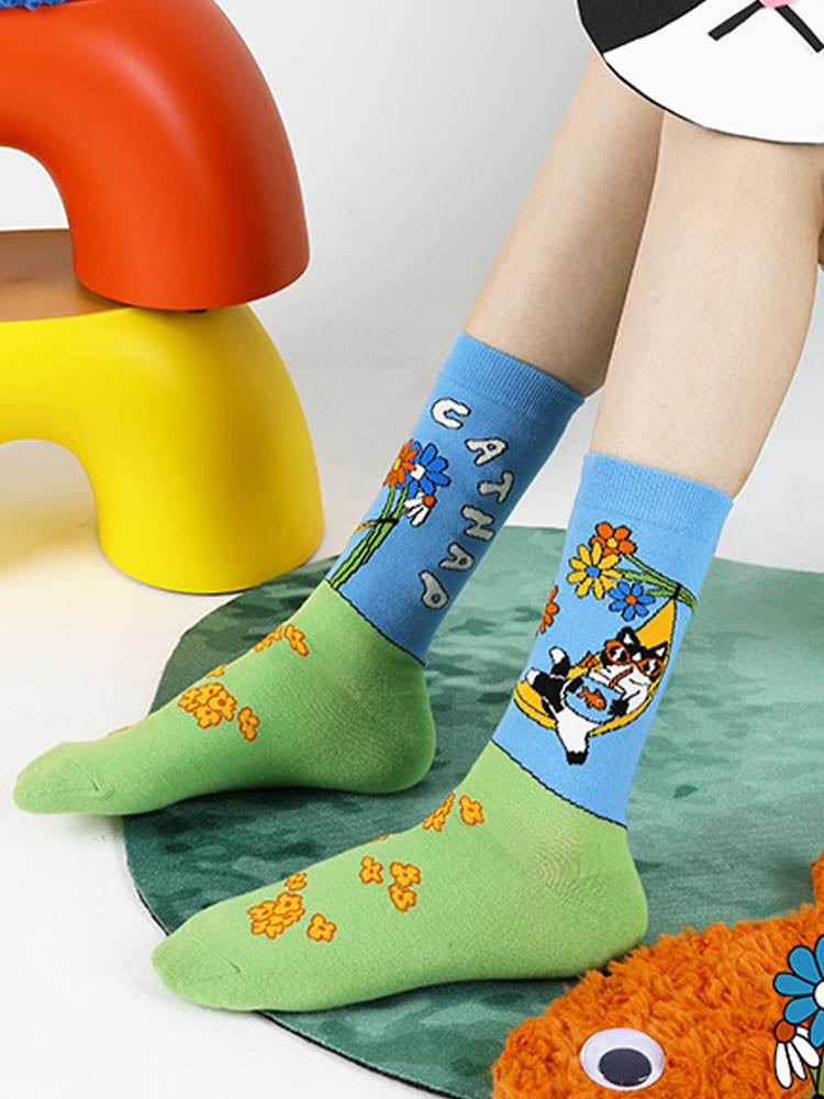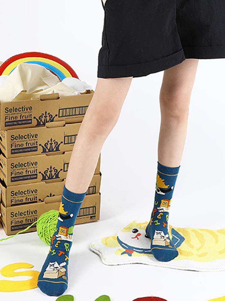 Cute Cartoon Meow Meow Mid-Calf Socks