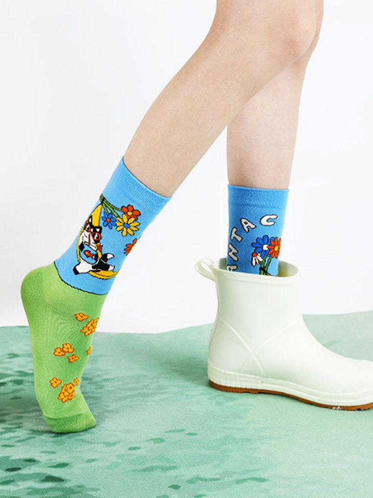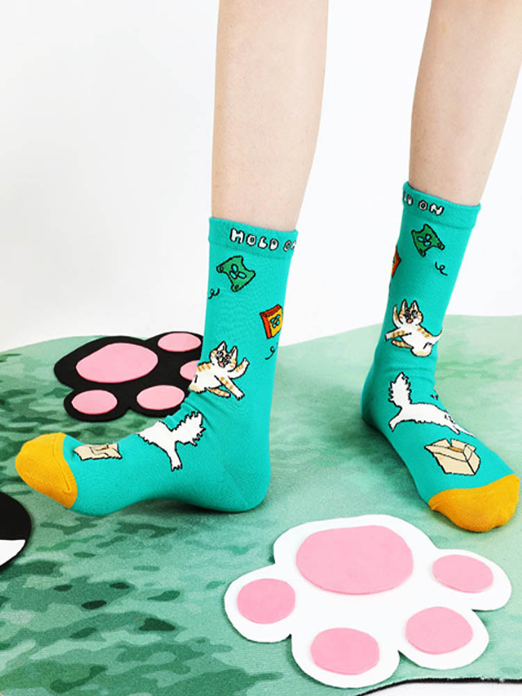 Step into adorable charm with our Cute Cartoon Meow Meow Mid-Calf Socks. Featuring delightful cartoon cat designs, these mid-calf socks add a playful touch to your outfit. Crafted from soft and breathable material, they offer comfort and style for everyday wear. Whether you're lounging at home or out for a casual day, these socks are the perfect accessory for cat lovers. Treat yourself to the cuteness of our Cartoon Meow Meow Mid-Calf Socks and let your feet express your love for feline friends!