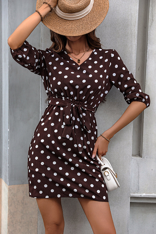 Fashion Dots Print Tie Waist Casual Dress