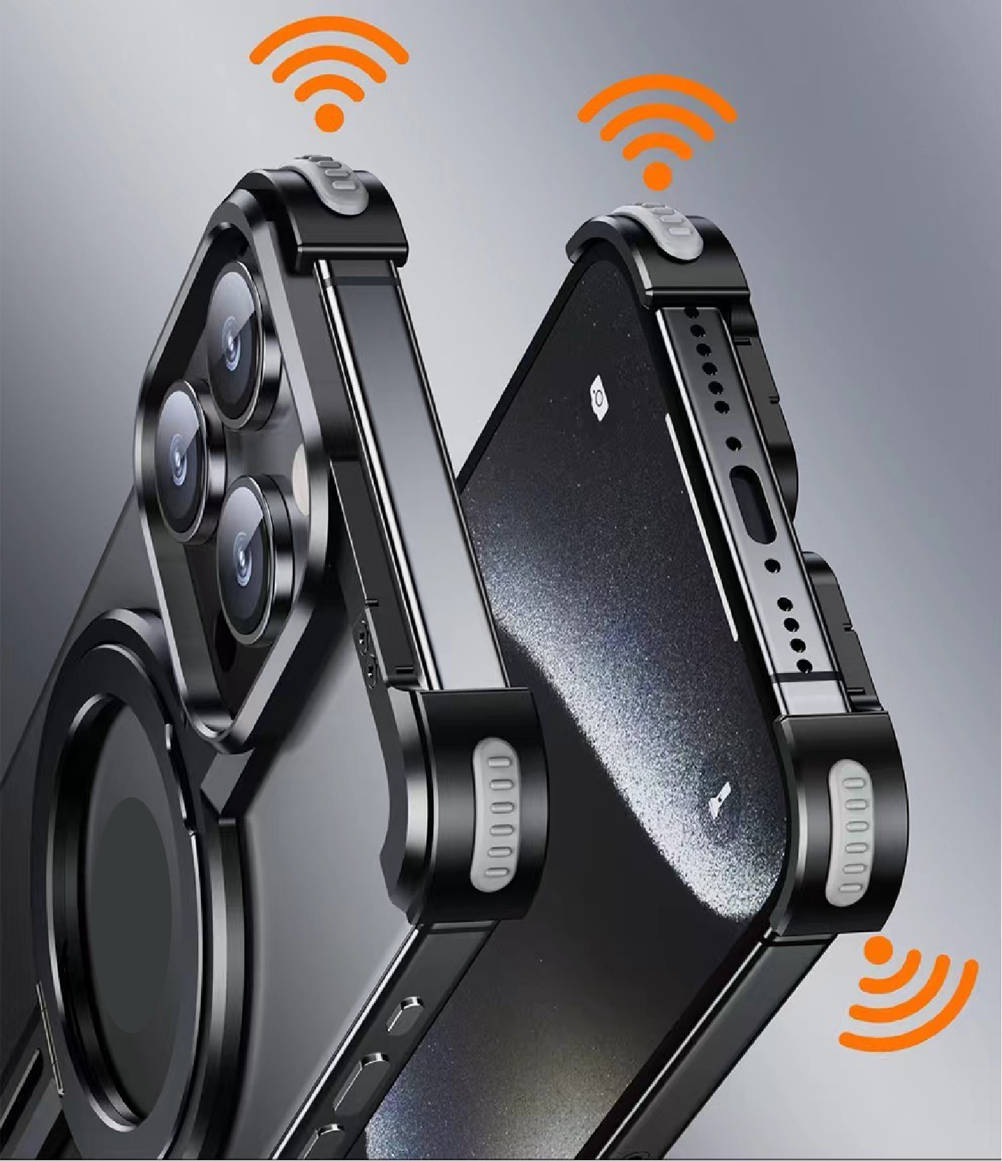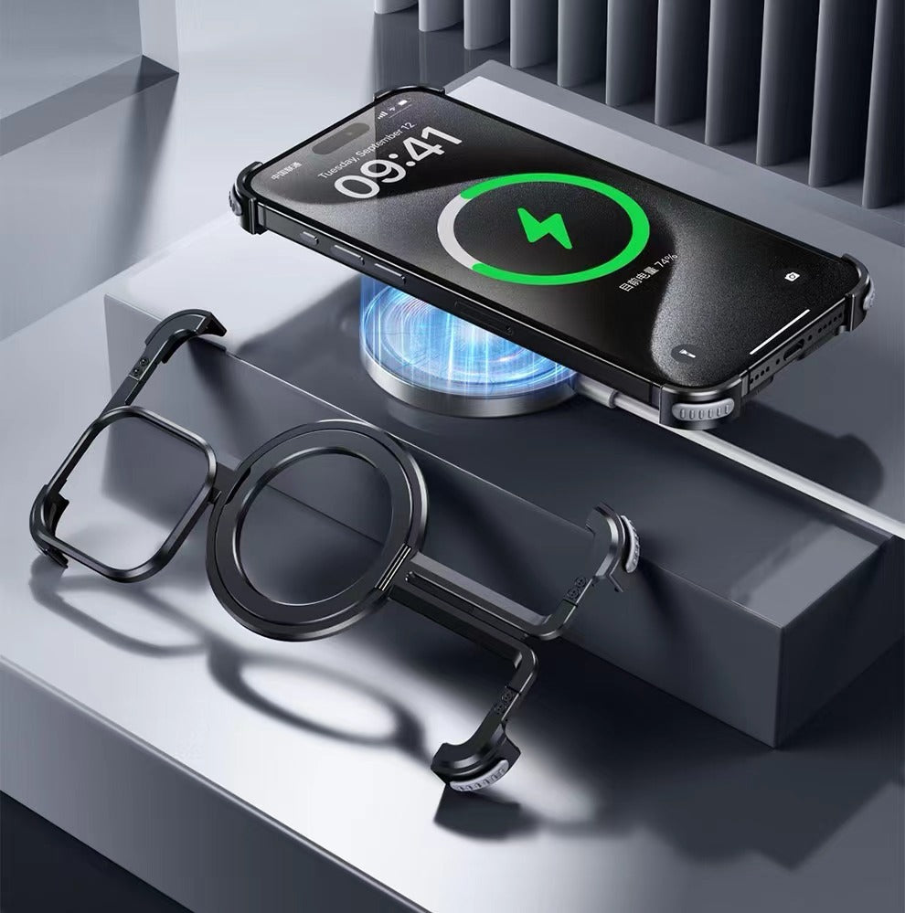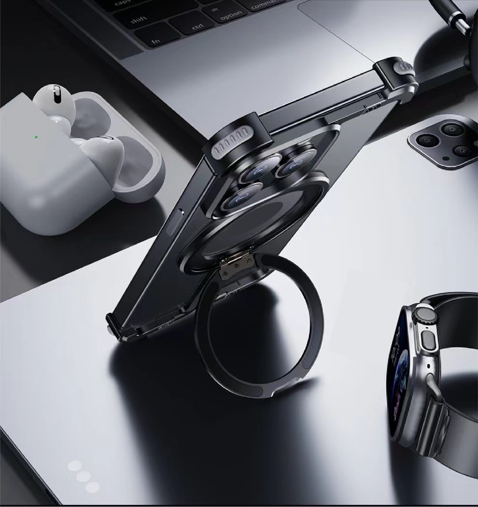 Elevate your iPhone with the π-shaped Metal Magnetic Mobile Phone Case, available in Black, Titanium, Orange, Desert Gold, Dark Blue, Purple, and Sky Blue. Choose rotating or non-rotating bracket options for iPhone 13-17 series, blending style and protection.