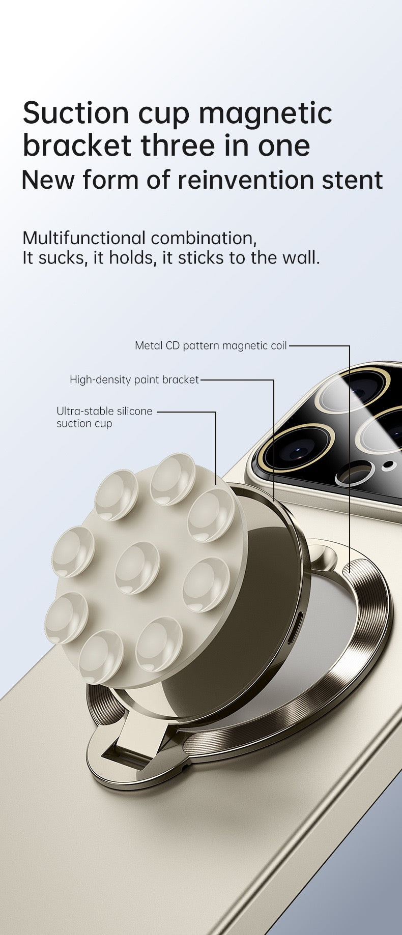 Large window lens protection suction cup magnetic stand phone case