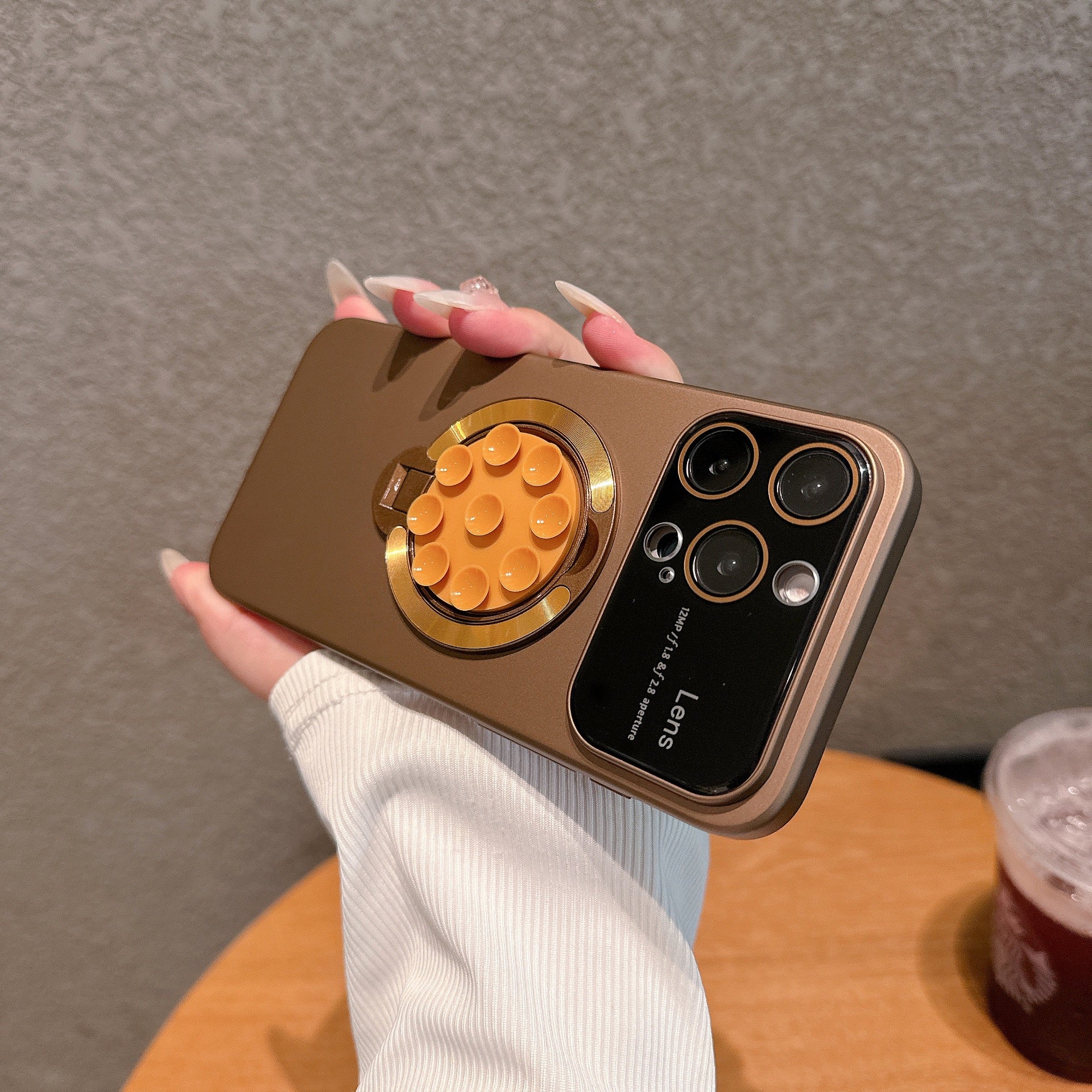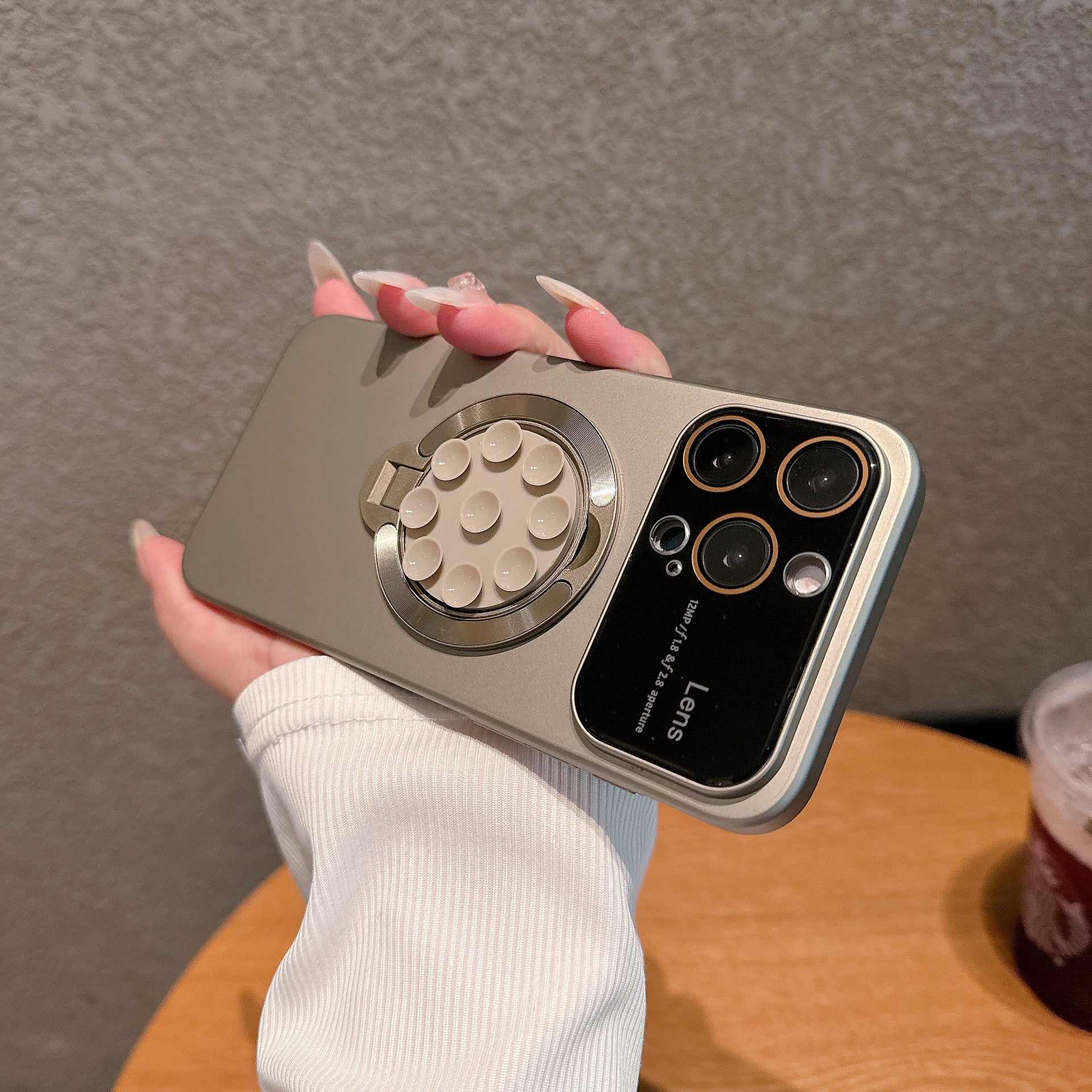 Emanating elegance and functionality, our phone case defines sophistication. With its sleek black, white, bronze, and titanium hues, this case seamlessly merges style and protection. Crafted with a large window lens protection suction cup magnetic stand, it ensures your device remains safeguarded while offering convenient hands-free viewing. Available in a range of captivating colors from khaki to sky blue, and compatible with iPhone models 11, 12, 13, 14, 15, and 16, this case is a testament to both fashion and practicality.