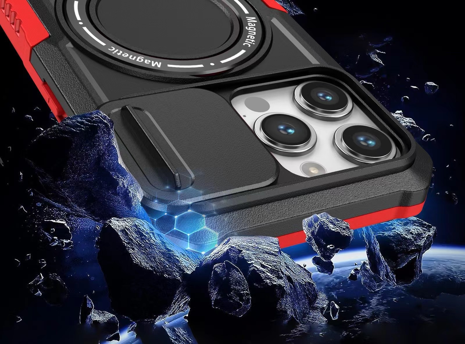 Mechanical style lens protection bracket magnetic phone case