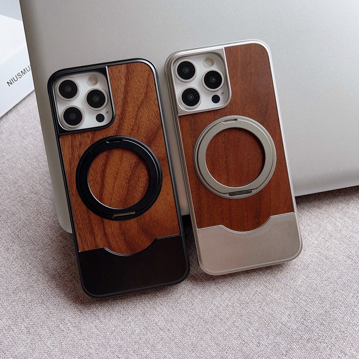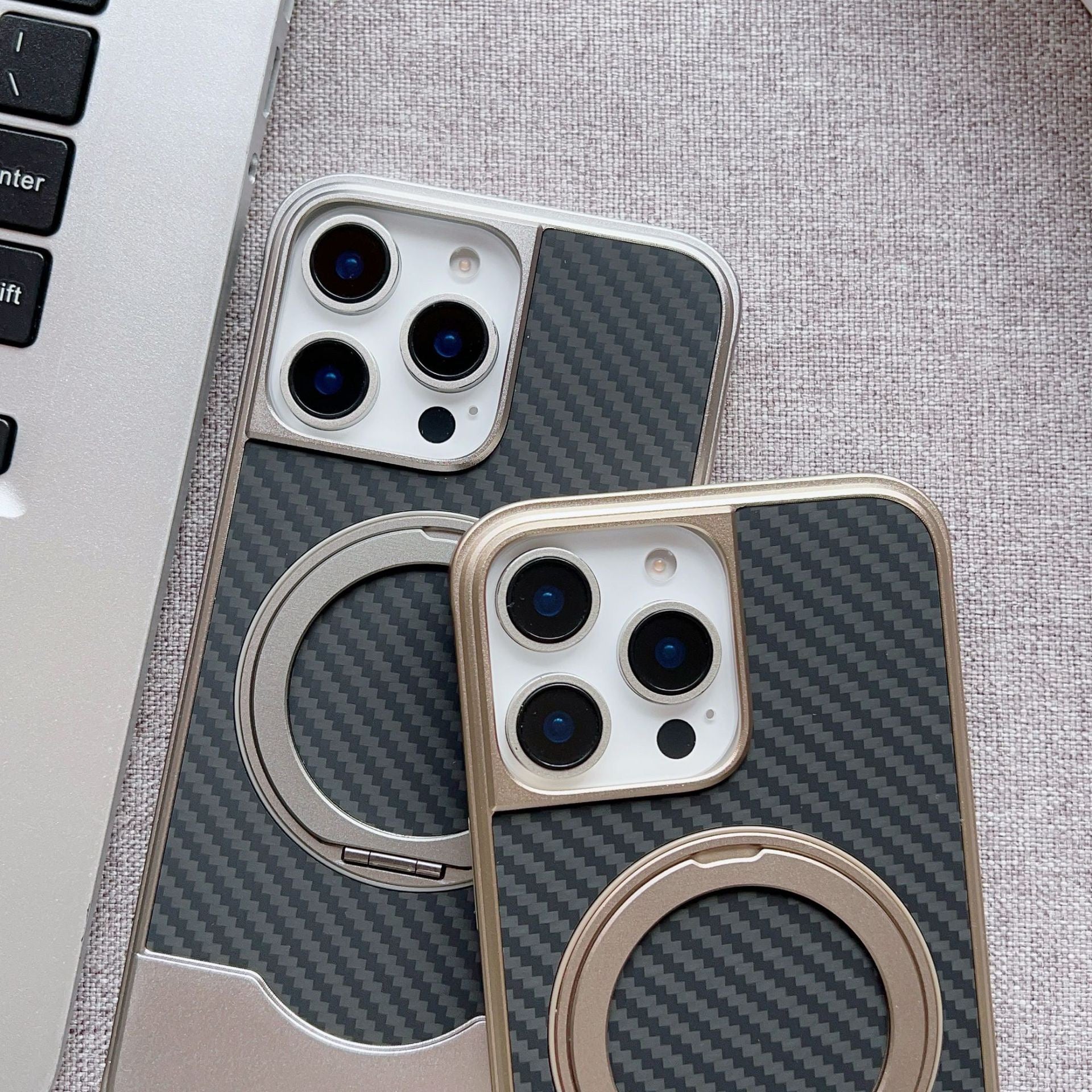 Enhance your smartphone experience with our Metal Telescopic Buckle Bracket Magnetic Phone Case. Available in Grey, Black, Gold, and various premium patterns like Leather, Walnut, and Carbon Fiber. Compatible with iPhone models 14-16 Pro Max for a sleek and stylish look.