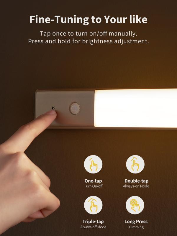 - USB Rechargeable: This motion detection cabinet light is powered by a Built-in 450mAh Battery to Ensure an easy to use and lost lasting battery life. Intelligent sensor chip with passive infrared technology, reliable performance, and high sensitivity, accurately detect your movements.
