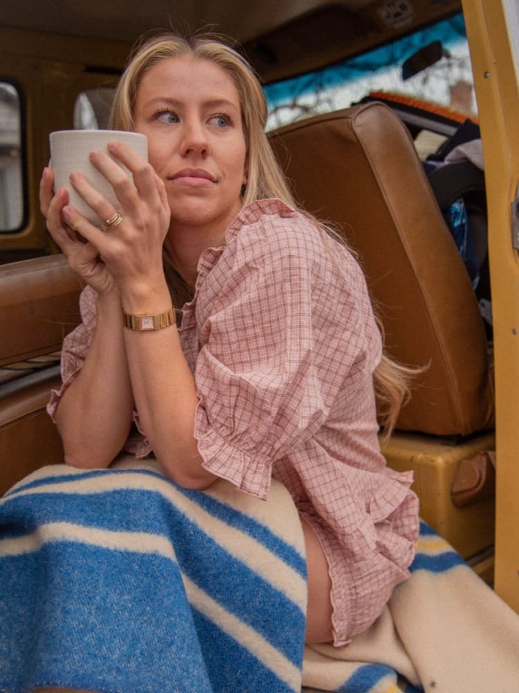 Inspired by romantic victorian sleepwear, the Romeo Sleep Set includes a pair of bloomer-style shorts and a flowy, feminine top; Designed to keep you cool and comfortable during the warmer months. this set features trimmed ruffles, functional buttons, a thin tie around the neckline, and an elastic waist. Wear this set as pajamas or style with a pair of boots or dainty flats for the sweetest daytime look.